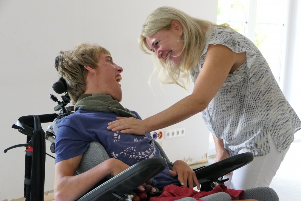 Für die jungen Bewohner mit großem Pflegebedarf ist der Umzug in WG eine Abnabelung vom Elternhaus und ein wichtiger Schritt zur Selbstbestimmung außerhalb der familiären Fürsorge. Die Familien freuen sich sehr auf diesen Schritt. So wie Christian und seine Mutter Andrea. „Eigentlich sind wir beide richtige Gewohnheitsmenschen, vertraute Abläufe sind uns wichtig. Anderseits bin ich mir sicher, dass Christian die Veränderung guttun wird. Seit sein Bruder nicht mehr bei uns wohnt, fehlt ihm der Trubel, der Kontakt mit Gleichaltrigen“, sagt Andrea. Beide haben ein gutes Bauchgefühl. „Als wir uns das Haus vor ein paar Monaten gemeinsam angeschaut haben, hat er gelacht und sich gefreut. Da wusste ich, dass mein Sohn die WG angenommen hat“, beschreibt die Mutter den Ausflug nach Anderten, als die WG damals noch Baustelle war.