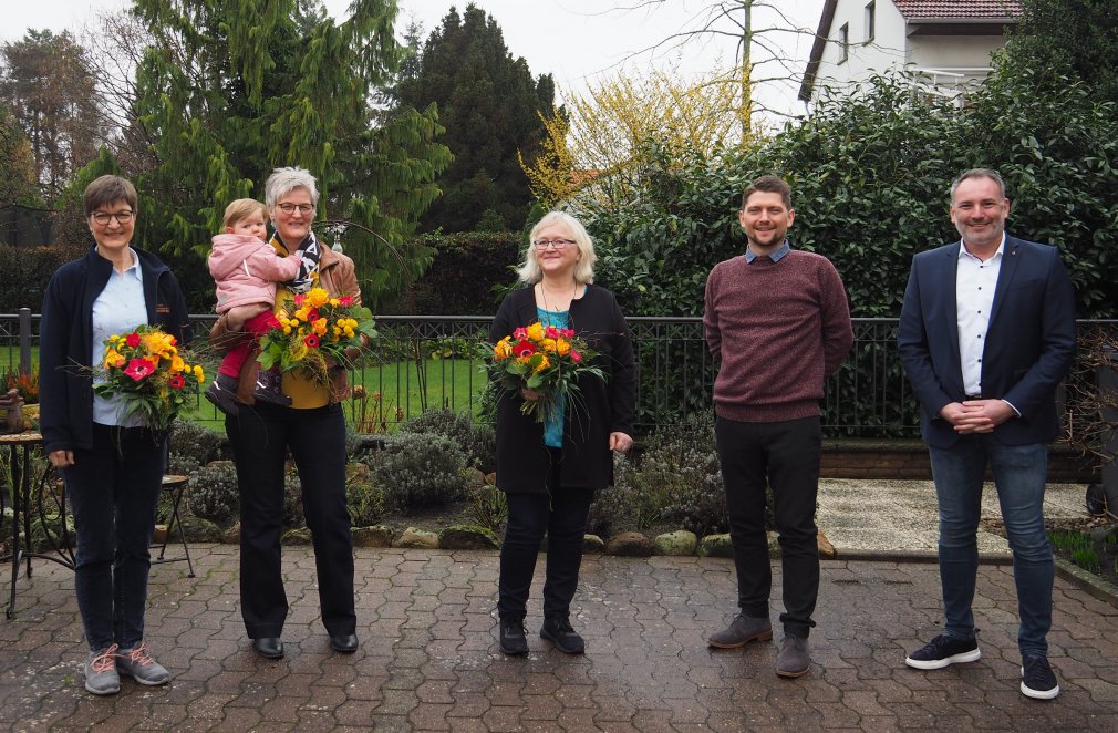 Für ihre 25jährige Betriebszugehörigkeit wurden drei Mitarbeiterinnen des ambulanten Kinderkrankenpflegedienstes „Krank und klein - bleib daheim“ am Mittwoch in einer Feierstunde geehrt. Auch der Sulinger Bürgermeister Patrick Bade war aus diesem Anlass in die Büroräume des Kinderkrankenpflegedienstes gekommen.