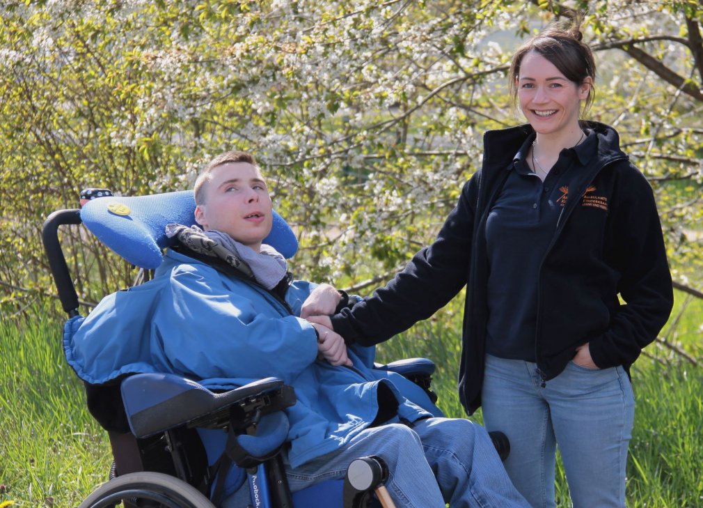 Bildunterschrift: Eine glückliche Entscheidung: Juliane Kolumbus freut sich darauf, Benedikt T. zu pflegen oder mit ihm an der frischen Luft spazieren zu gehen.