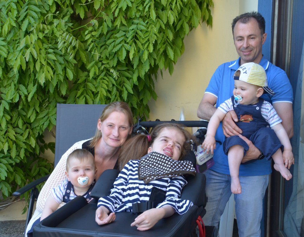 Bildunterschrift: Jennifer D. und ihre Familie brauchen dringend Unterstützung - doch es gibt nicht genügend ambulante Kinderkrankenschwestern. Tagsüber ist sie mit Luis (auf dem Arm der Mutter), der schwerkranken Caitlin (Mitte) und Zwillingsbruder Luca alleine. Vater Adao kann seine Frau erst nach der Arbeit unterstützen.