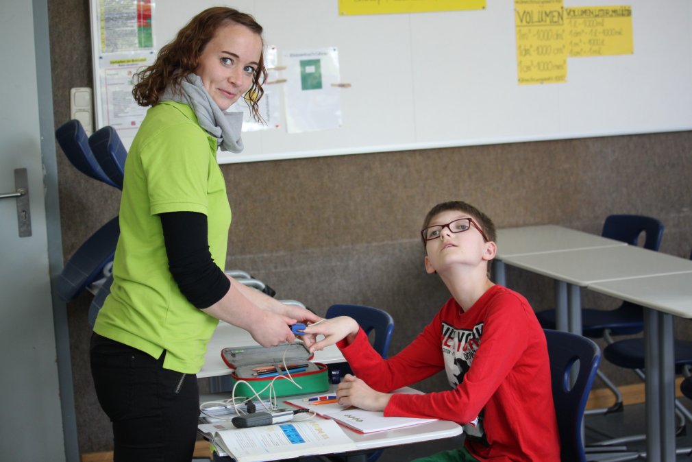 In seinen Diensten versorgt der Krankenpfleger zur Zeit zwei Mädchen (17 und 18 Jahre alt), beide schwerst-mehrfachbehindert. Er übernimmt die komplette Behandlungspflege, gibt ihnen Nahrung, Medikamente und begleitet sie in die Schule. Für die beiden Jugendlichen sei in der Förderschule vor allem der Kontakt mit anderen Kindern wichtig. „Es geht vorwiegend ums Wohlfühlen, die visuelle Wahrnehmung und die Gemeinschaft“. Eine Ergo- und Physiotherapeutin, zwei Heilerziehungspfleger und zwei Erzieherinnen sind für die insgesamt sechs Kinder mit Förderbedarf in der Schule da. Sie lesen vor, spielen mit ihnen, gehen mit ihnen in den Snoozelraum, geben Massagen und beschäftigten sie.