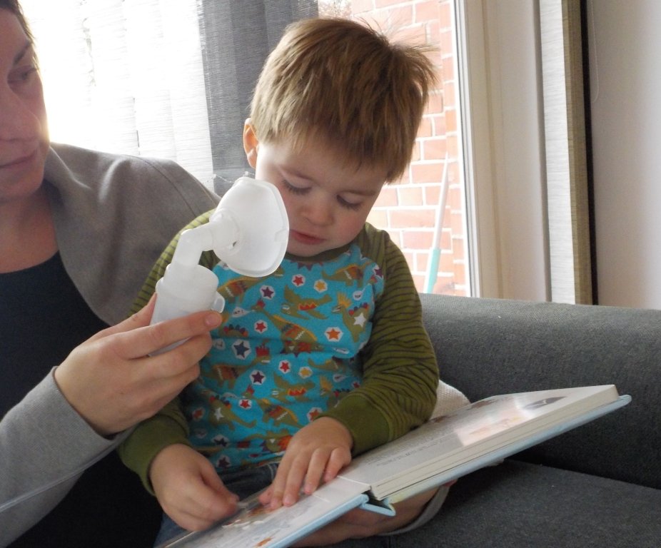 Inhalieren mit einer Medikamenten- oder Kochsalzlösung lindert Gerrits Atemnot.